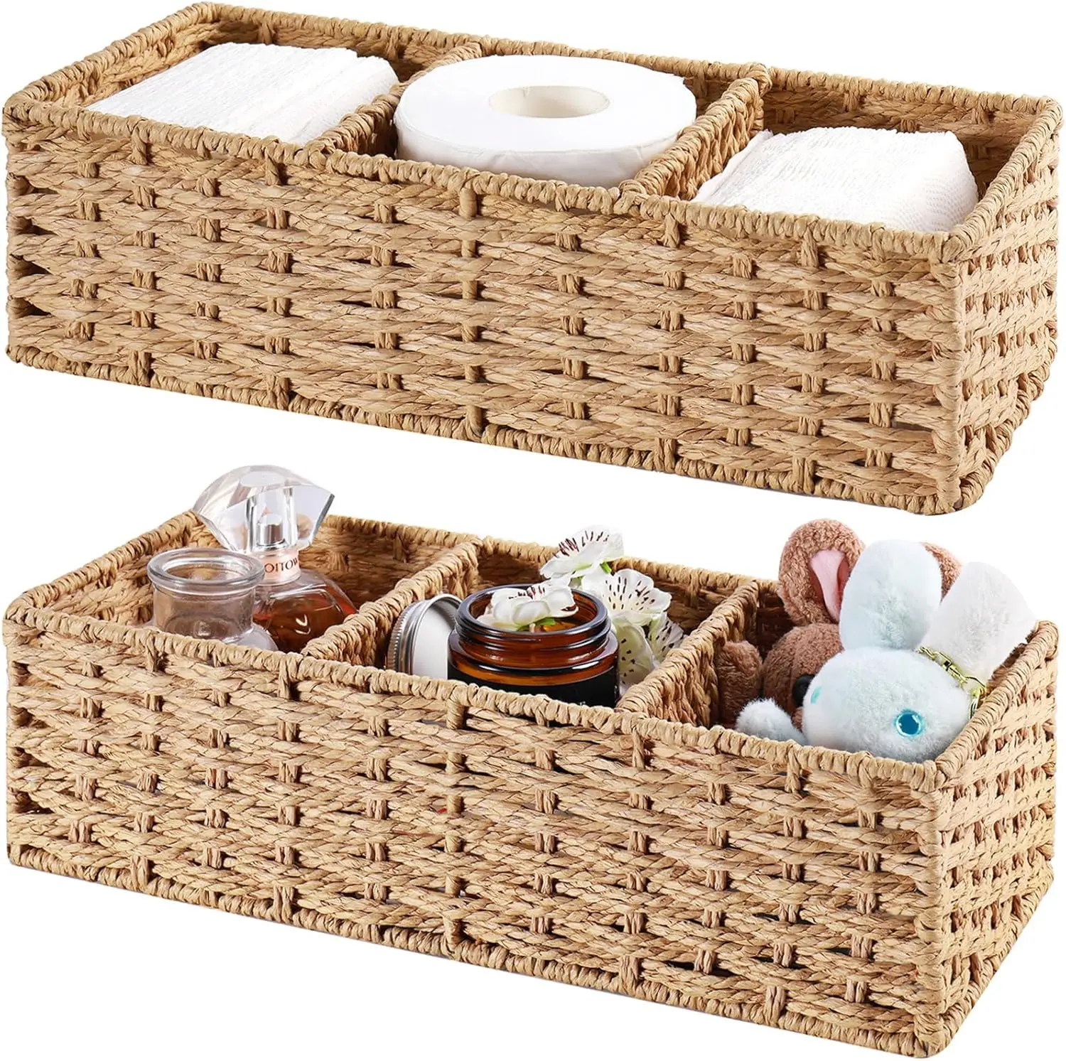 3-Section Wicker Baskets for Shelves Hand-Woven Round Paper Rope Wicker Storage Basket Toilet Paper Basket for Organizing  Read more