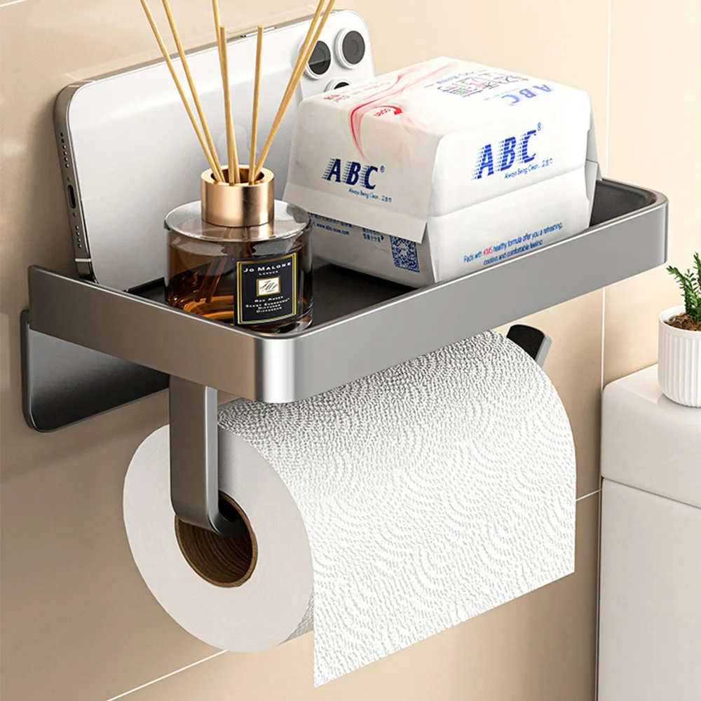 1pc Adhesive Carbon steel +ABSToilet Paper Holder with Shelf, Wall Hanging Bathroom Tissue Dispenser, No Drilling Required