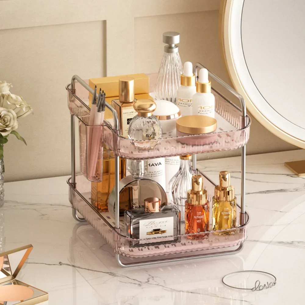 2 Tier Makeup Rack Skincare Countertop Organizer Office Double-Layer Water Cup Holder Seasoning Shelf Bathroom Storage Shelves