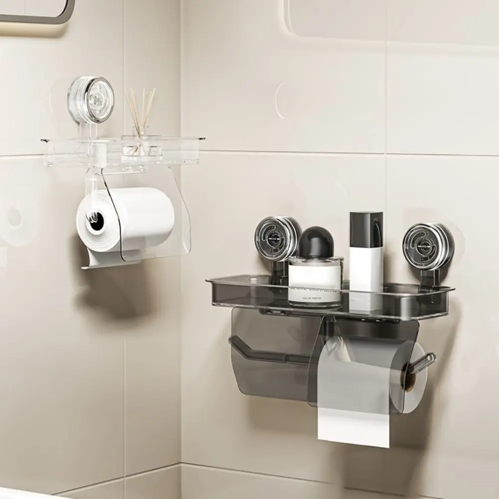 Wall Mounted Suction Cup Tissue Holder Punch-free Stable Bathroom Storage Rack Reusable PET+ABS Toilet Paper Holder Office