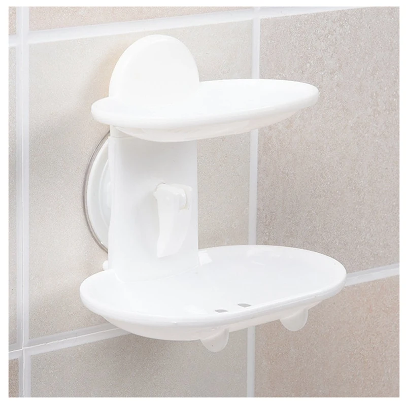 Double Soap Dish Strong Suction Soap Holder Cup Tray for Shower Bathroom (White)
