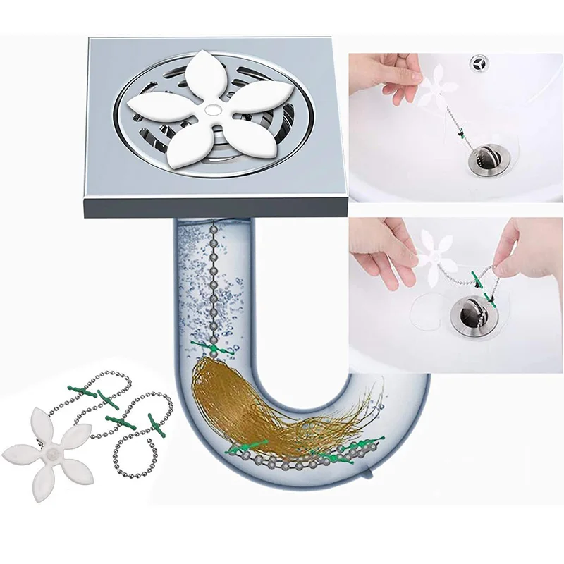 2Pcs Premium Drain Hair Catcher Flower Shower Hair Cleaning Chain Bathroom Drain Strainer Hair Catcher Chain Hook