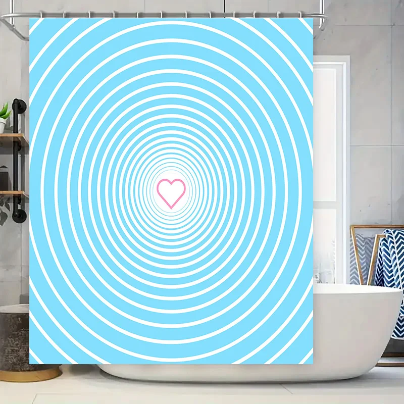 Blue White Shower Curtain Striped with Heart Pattern for Bathroom Decor Waterproof Decoration Bath Mat Set Accessories