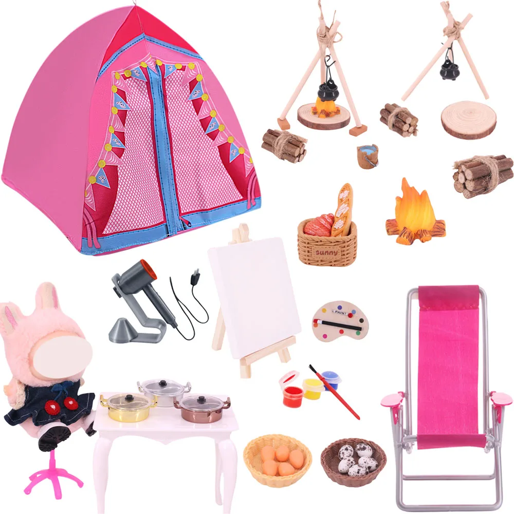 For Labubu Accessories Tent Bonfire Egg Lounge Chair Outdoor Activity Items For 17CM Plush Doll Accessories, Christmas Gift Kid