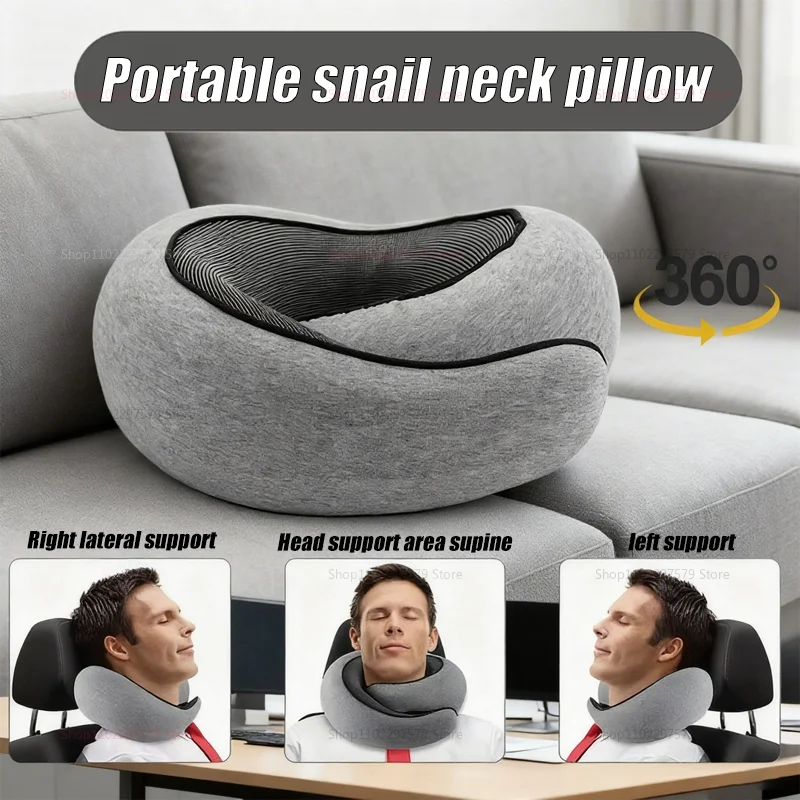 Portable Travel Neck Pillow Memory Foam U-Shaped Snail Style Adjustable Soft Sleep Pillow For Car Plane Train Sleep Support