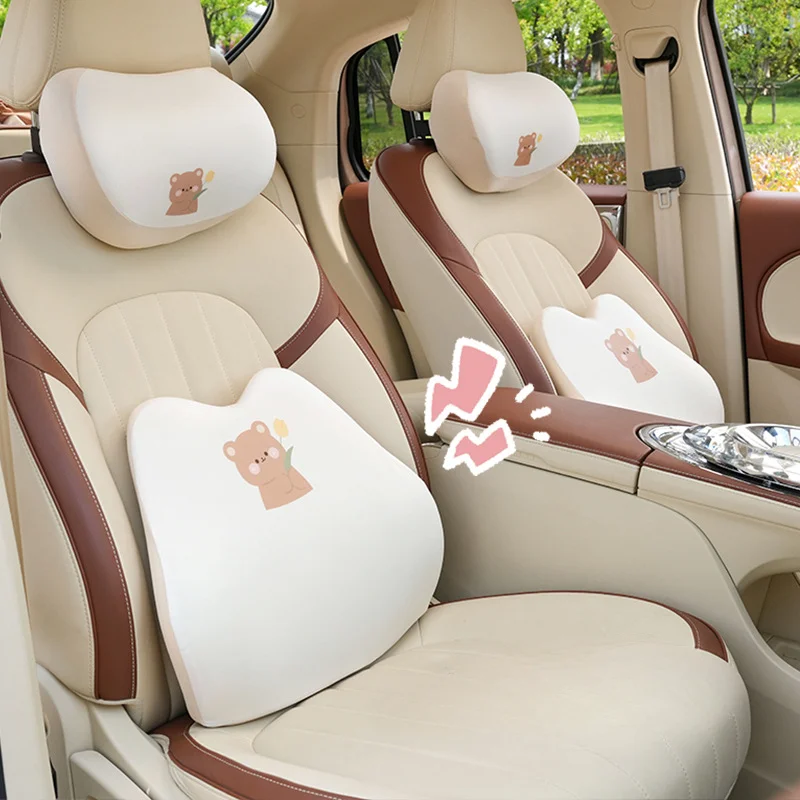 Tulip Bear car headrest Cute memory cotton soft car neck pillow pillow cartoon comfortable car headrest