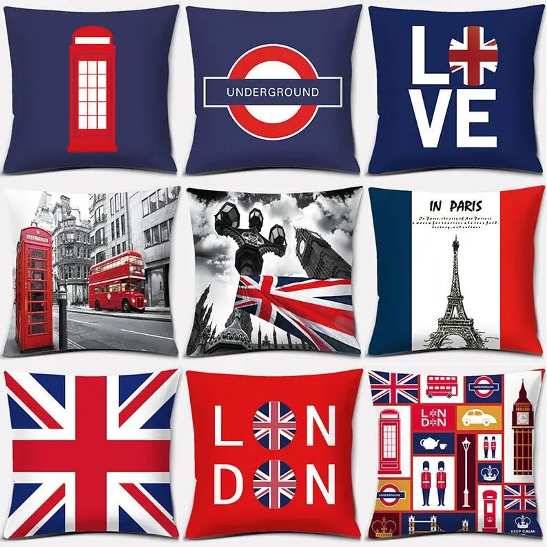 Home Decor LOVE England Series Printed Square Polyester Pillowcase Cushion Cover Bedroom Living Room Ornament funda de almohada