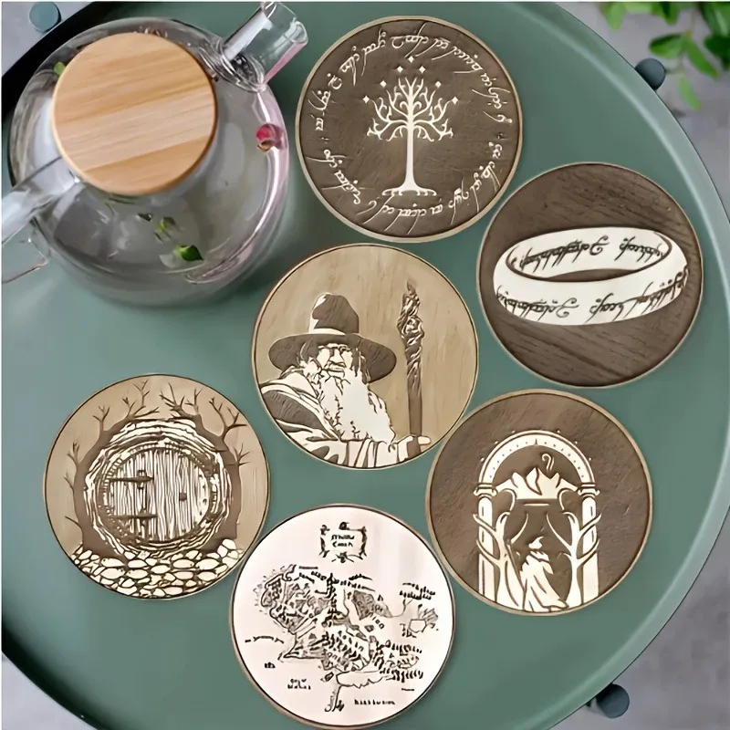 Festive Cheer Wooden Coaster - 6-Piece Holiday Essential, Anti-Slip Drink Pads for Seasonal Entertaining & Gift Giving