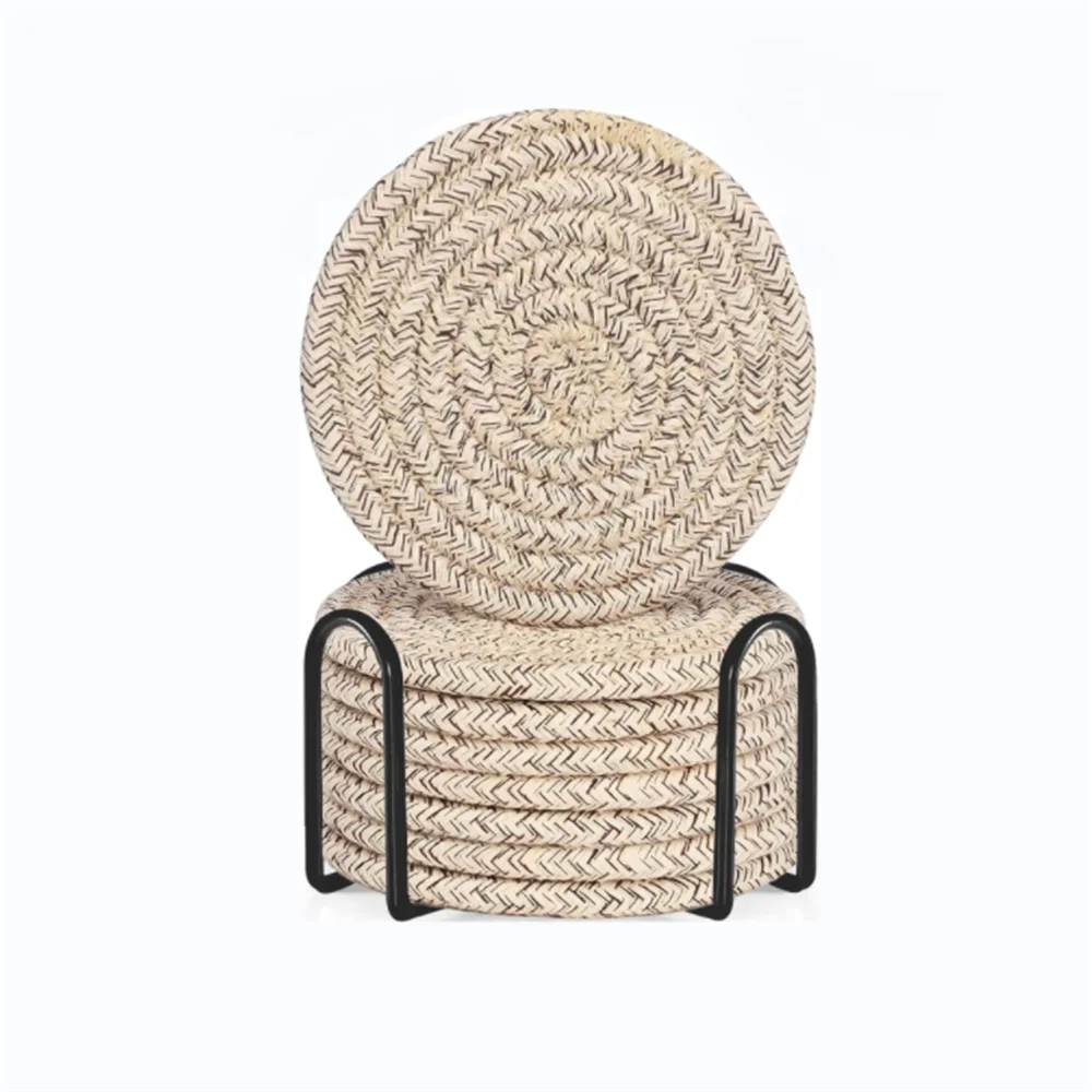 9pcs/pack 8 Coasters with 1 Stand, Cotton Absorbent Coasters, Minimalist Home Decoration Coaster Set, Wooden Tabletop Protection  Read more