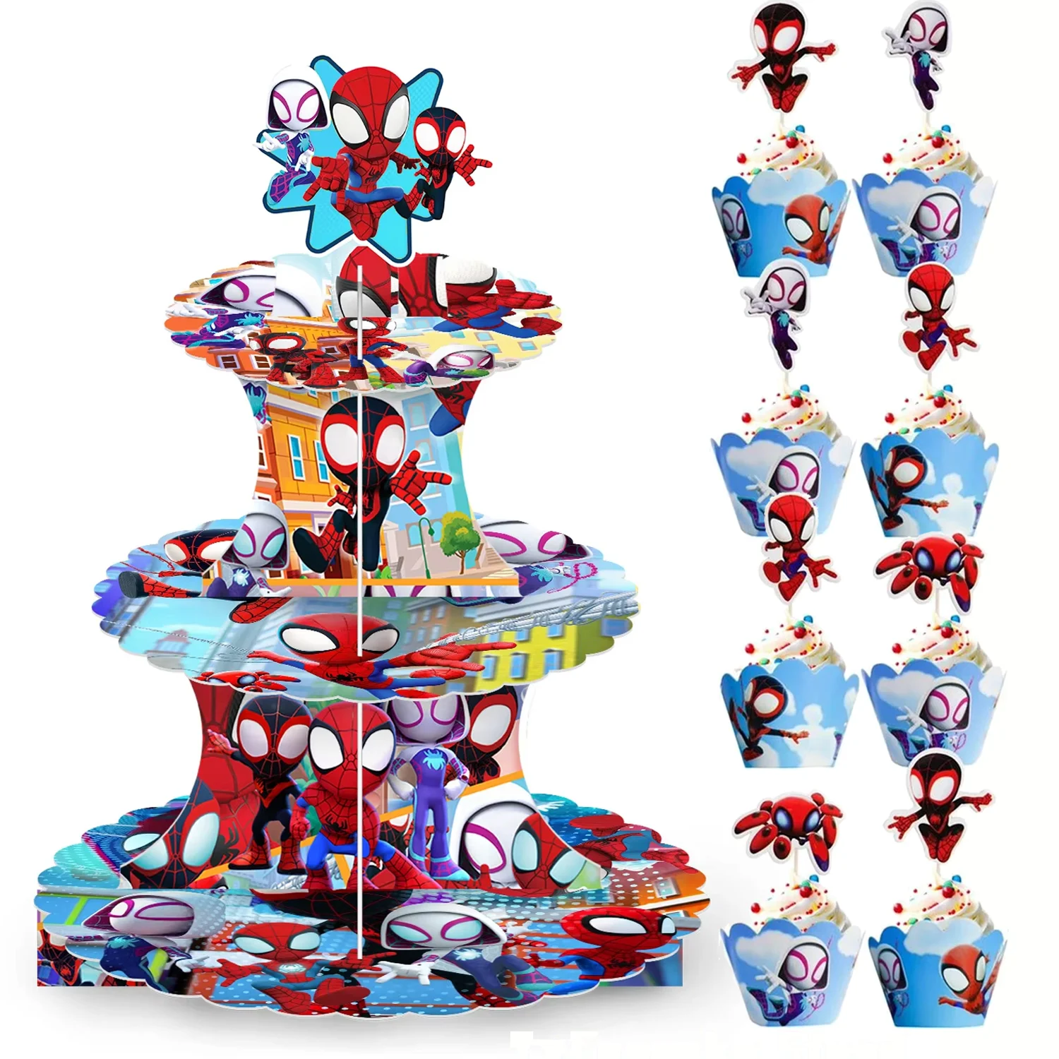 3-Tier Spidey And His Amazing Friends Cake Stand Kids Boys Birthday Party Supplies Cupcake Rack Holder Cake Tray Decor Display