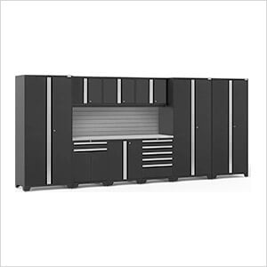 NewAge Garage Cabinets PRO Series Black 10-Piece Set with Stainless Steel Top and Slatwall