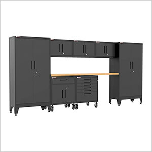 Armadillo Tough Black 8-Piece Garage Cabinet Set with Levelers and Casters