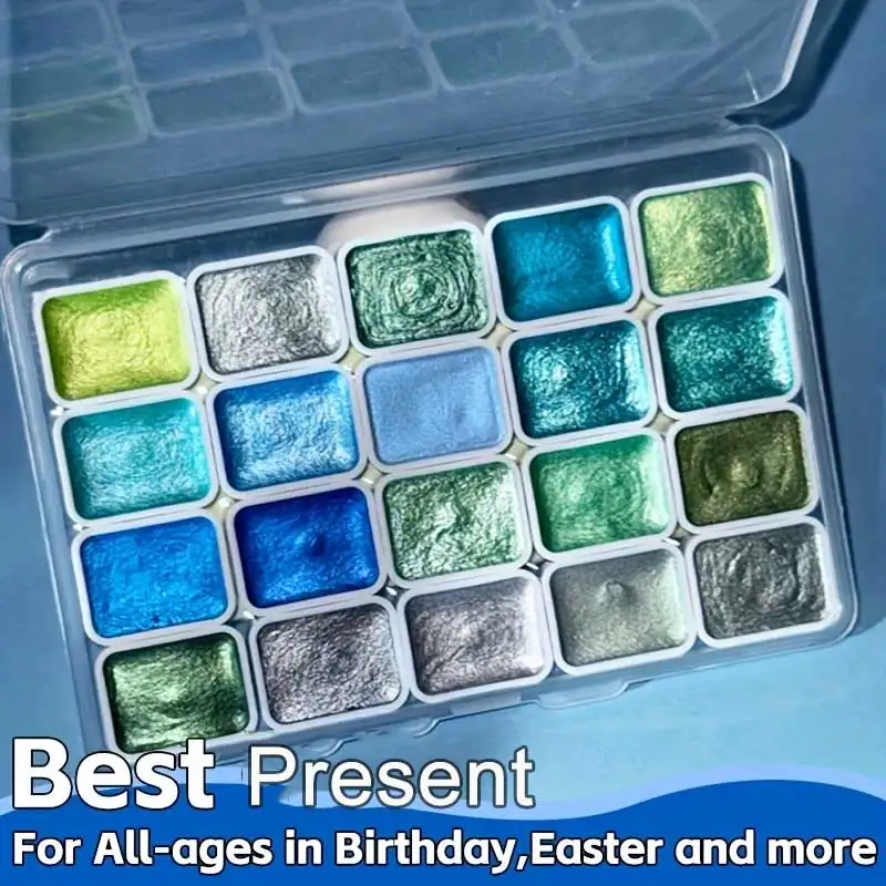 20 Color Watercolor Green Pigment Set | Solid Packaging, for Traditional Chinese Painting, Tangka Calligraphy, Color Painting