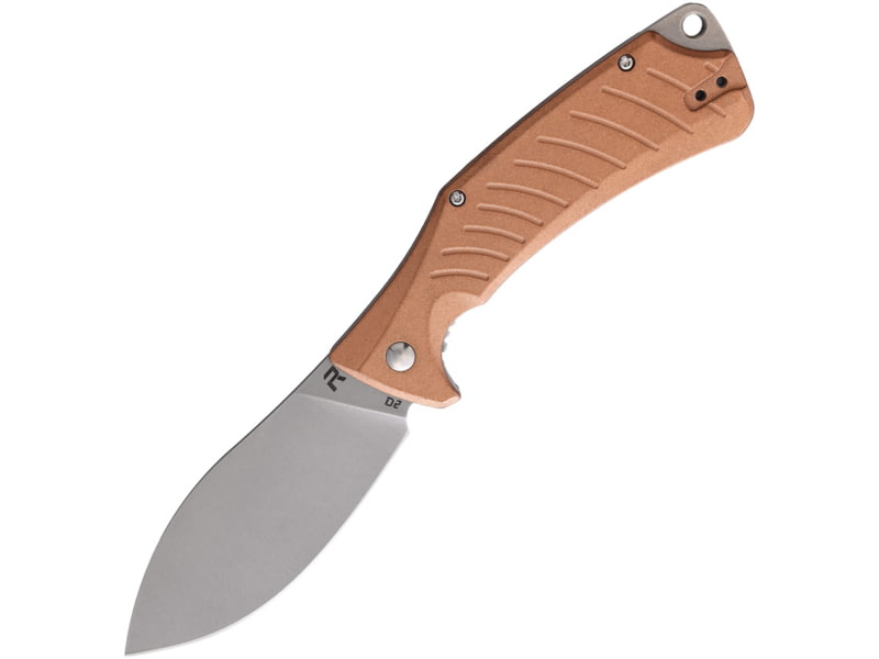 Revo Ness Linerlock Copper 3.50 in Folding Knife Tumbled finish copper NESSREV2COP. 63" (11.76cm) closed. 3.5" (8.89cm) stonewash finish D2 tool steel blade. Tumbled finish copper handle. Extended tang. Lanyard hole. Pocket clip. Boxed....  Read more