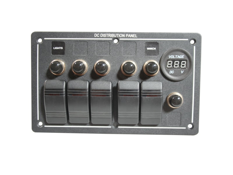Bulldog Winch 5-Switch Panel with Breakers And Voltmeter 20267. This panel also allows you to quickly cycle all five switches with its convenient momentary ON/OFF buttons. This panel is fully waterproof and features red indicating lights for each...  Read more