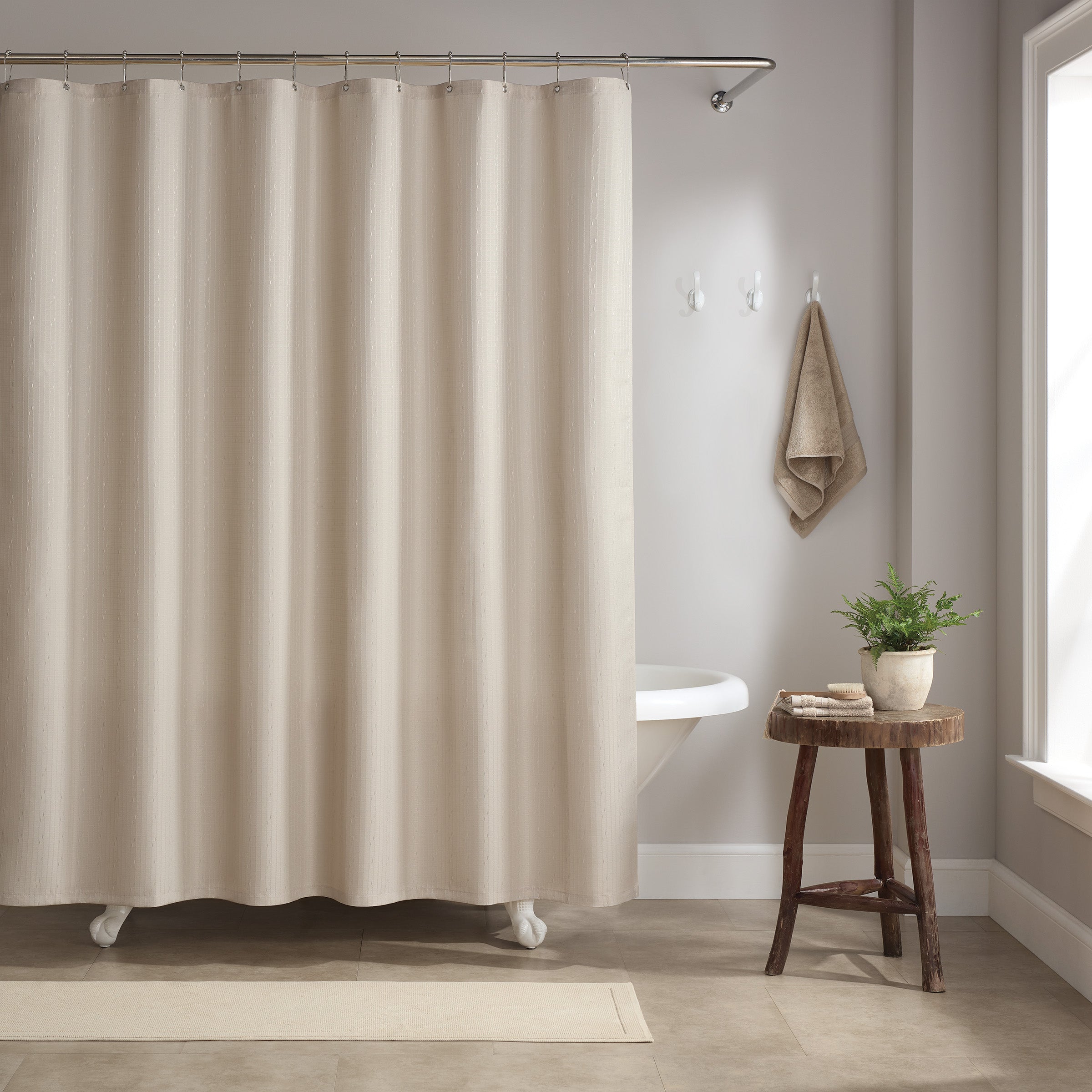 This stunning premium quality shower curtain set has a lovely solid color jacquard and is designed with an intricate woven stripe and grid pattern with a subtle raindrop stitch overlay, creating instant appeal. This premium quality shower curtain...  Read more