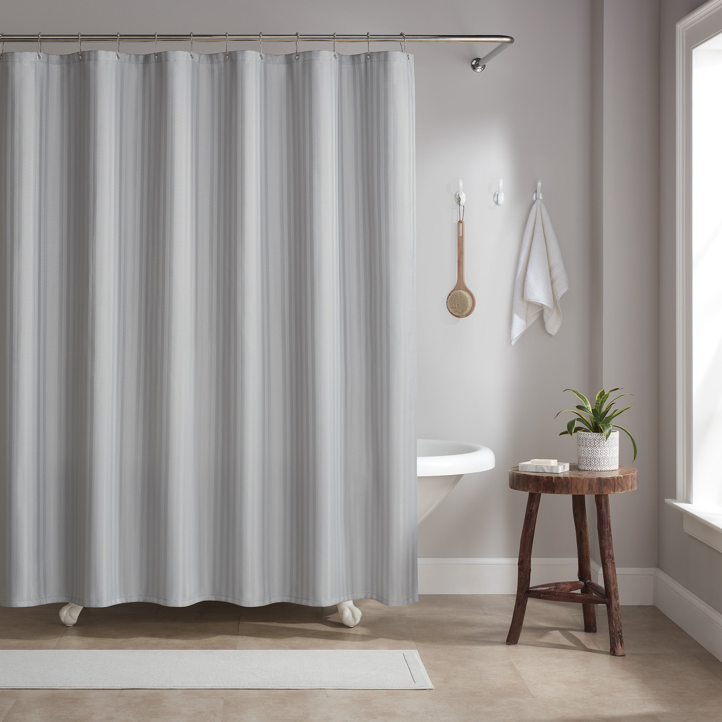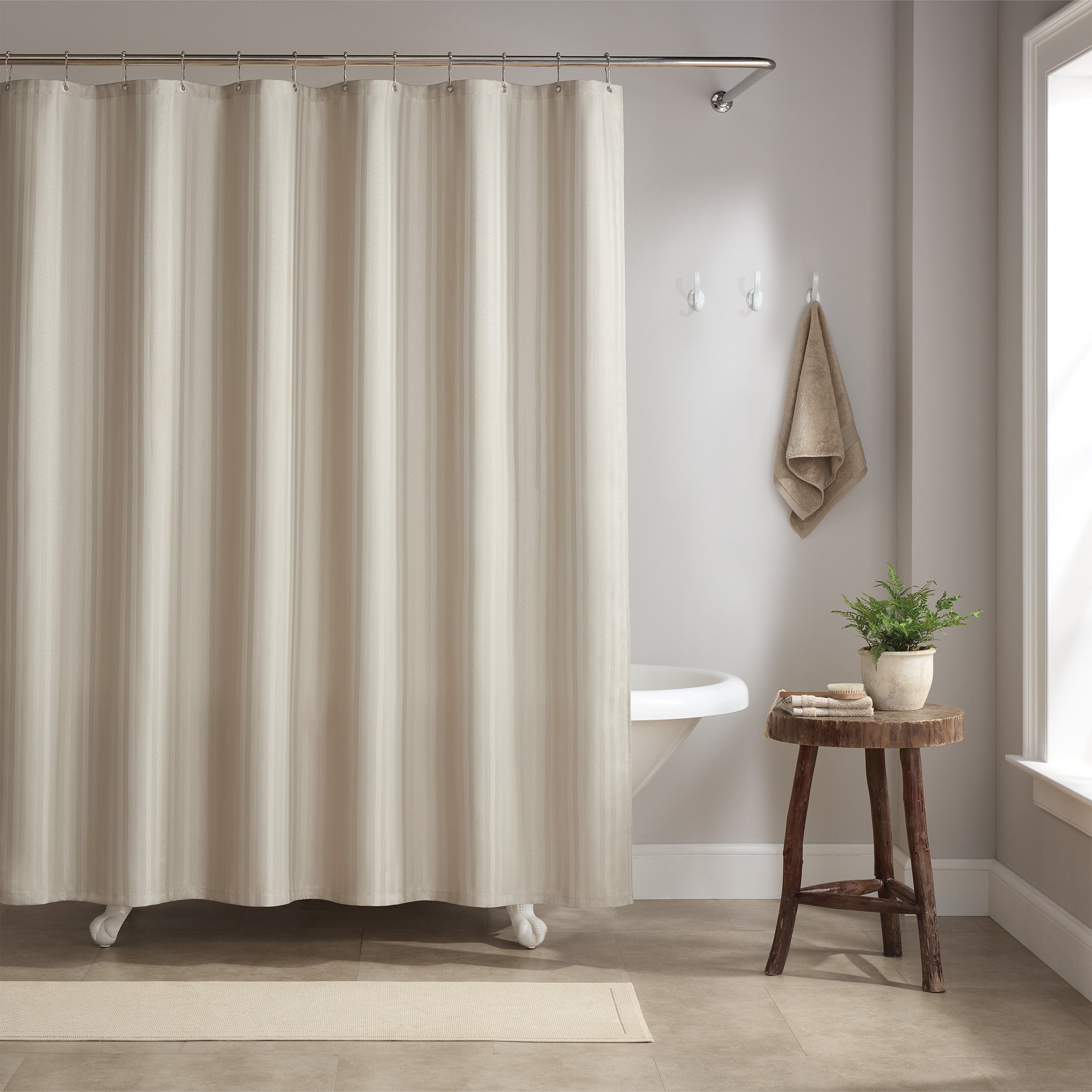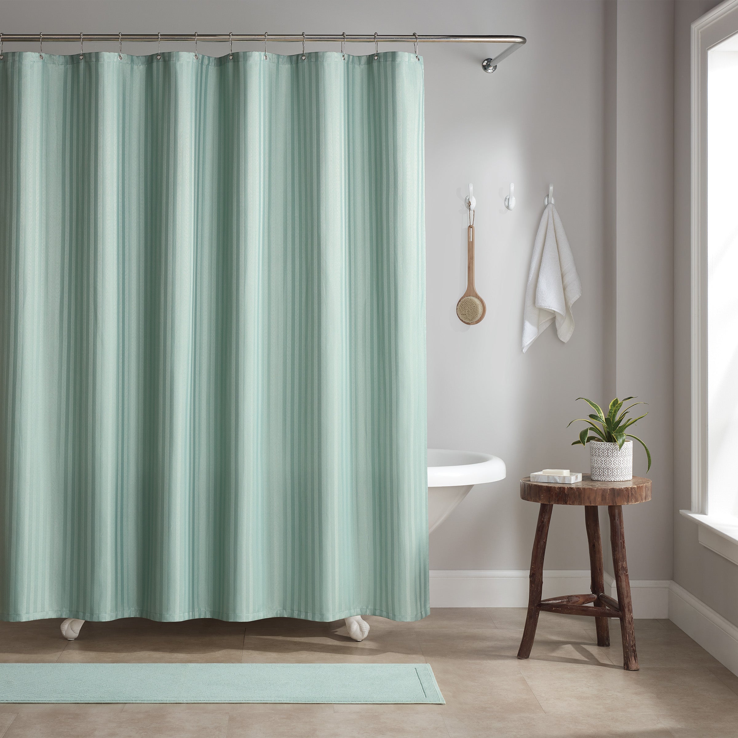 This stunning premium quality shower curtain set has a lovely solid color damask and is designed with a regal double woven reverse vertical stripe that creates an illusion of texture and depth. This premium quality shower curtain set is complete...  Read more