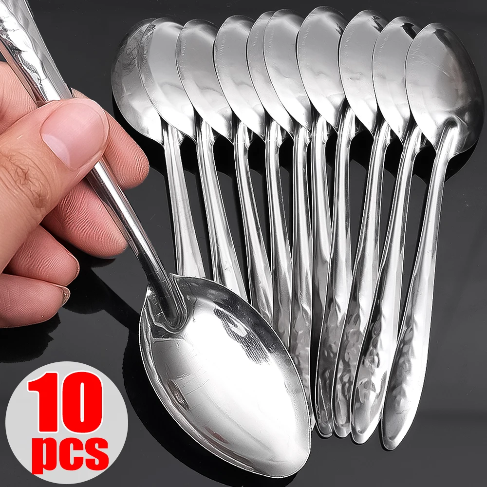 5/10Pcs Stainless Steel Spoon Silver Mirror Polished Scoop Soup Rice Fresh Fruit Salad Ice Cream Home Kitchen Tableware Tools