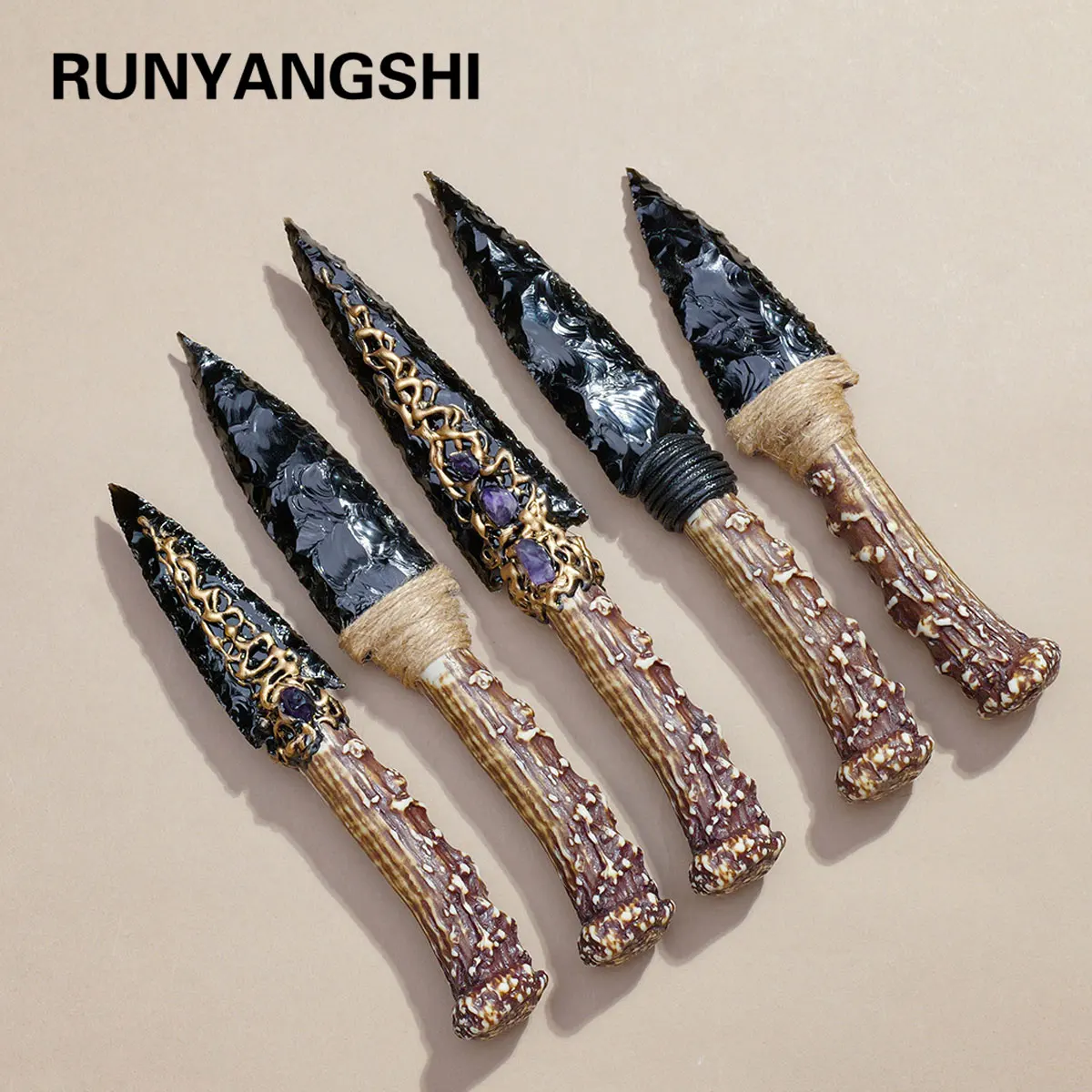 1PC Crystal Obsidian model | Natural Stone Model Knife | Polished Unbladed Craft | Crystal Decorative Art Not a real