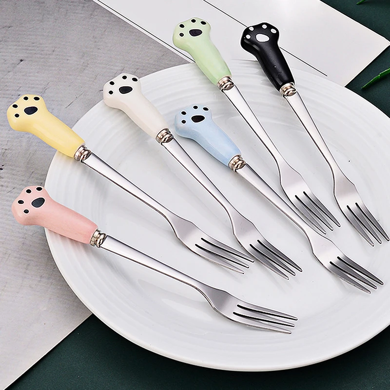 Cute Cartoon Cat Paw Fruit Fork Food Grade Stainless Steel Edges Mirror Polished Portable Tableware Fork For Adults Kids School