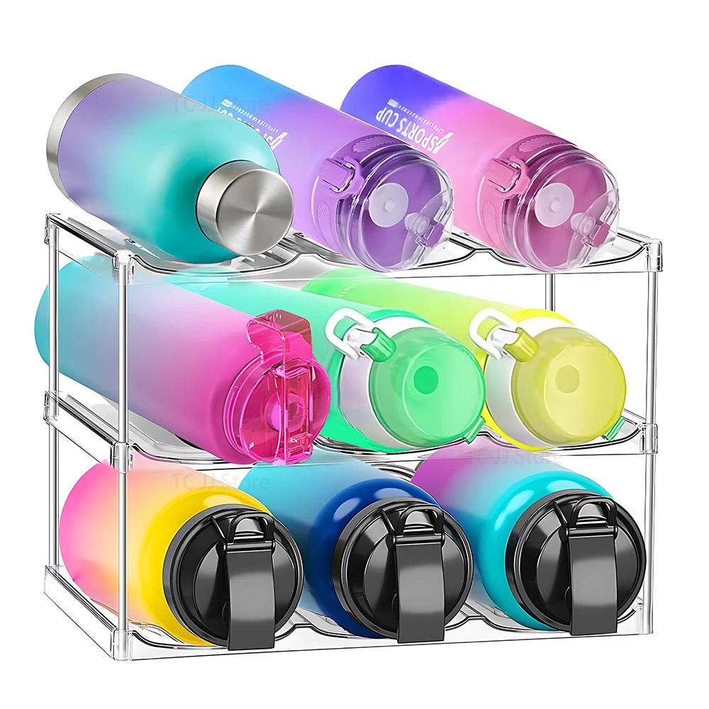3 Tier Stackable Water Bottle Organizer Holder for Cabinet Plastic Clear Wine Rack Kitchen Storage Holder For Wine Drink Bottles