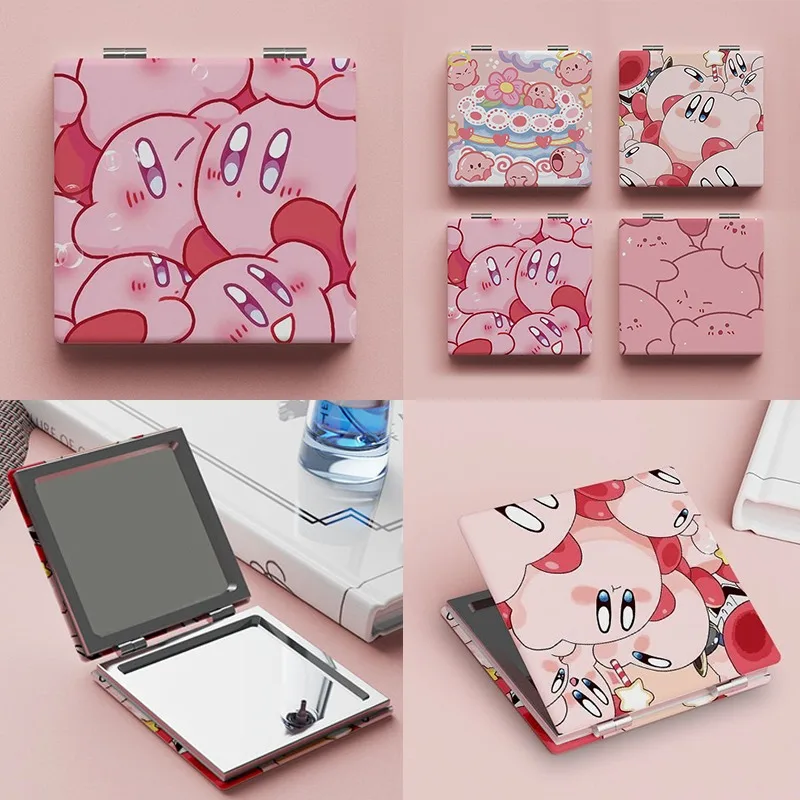 Kirby Makeup Mirror Women Cute Portable Cartoon Folding Mini Hand Mirrors Girls Student Square Double-sided Anime Small Mirror  Read more