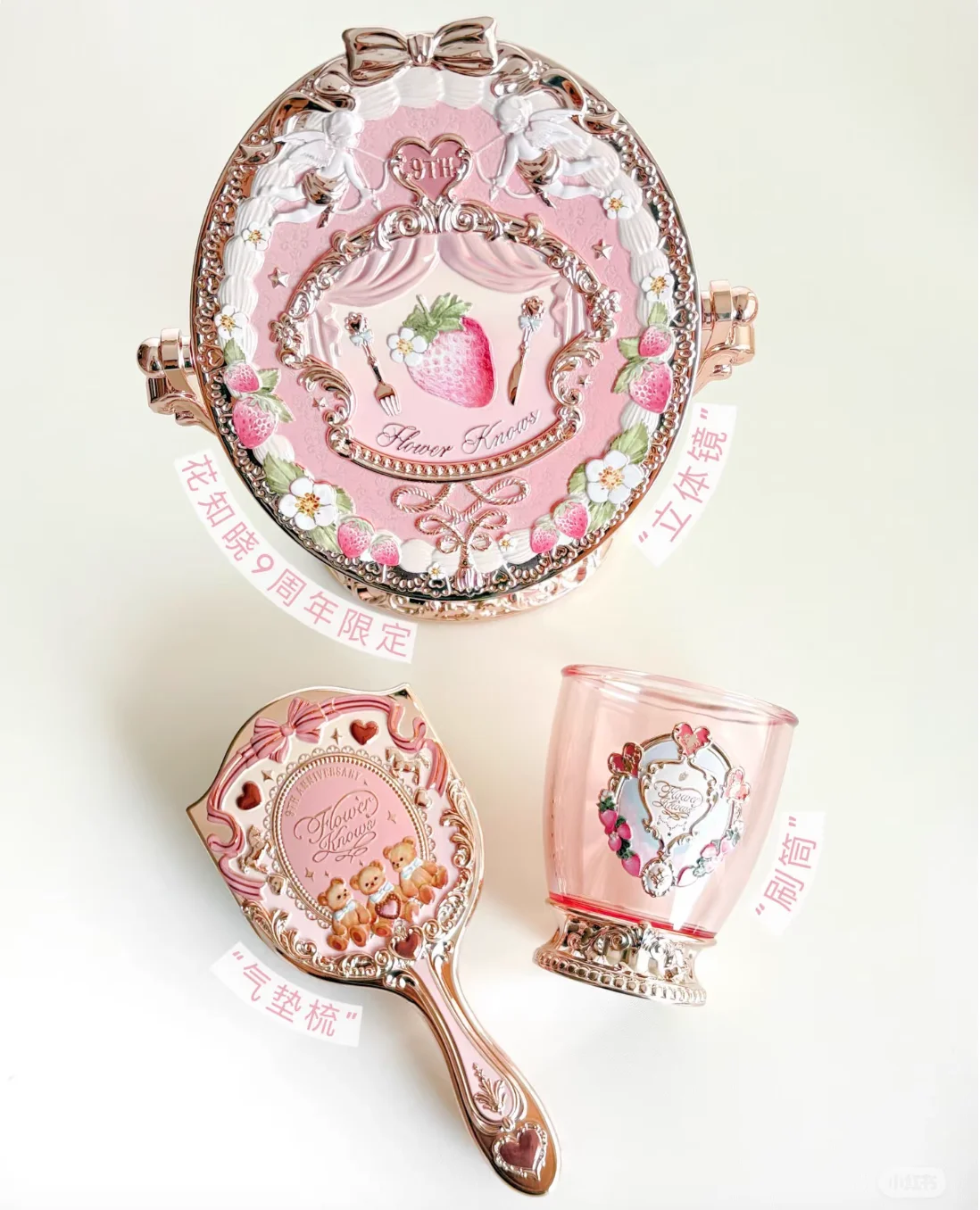Flower Knows 9th Anniversary Limited Edition Luxury Vanity Mirror with Paddle Hair Brush And Brush Holder Flowerknow Stereoscopi