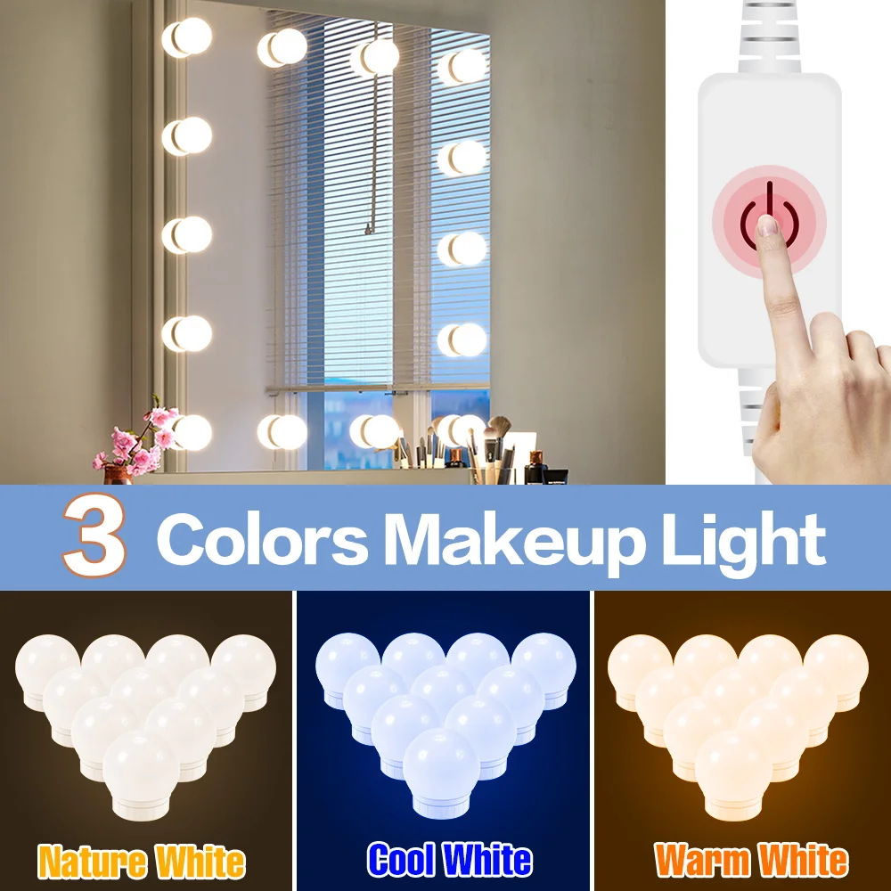 LED Makeup Mirror Lamp Bathroom Vanity Lights Touch Dimming Bedroom Dressing Table Lighting Nature White DC5V 2/6/10/14 Bulb Set
