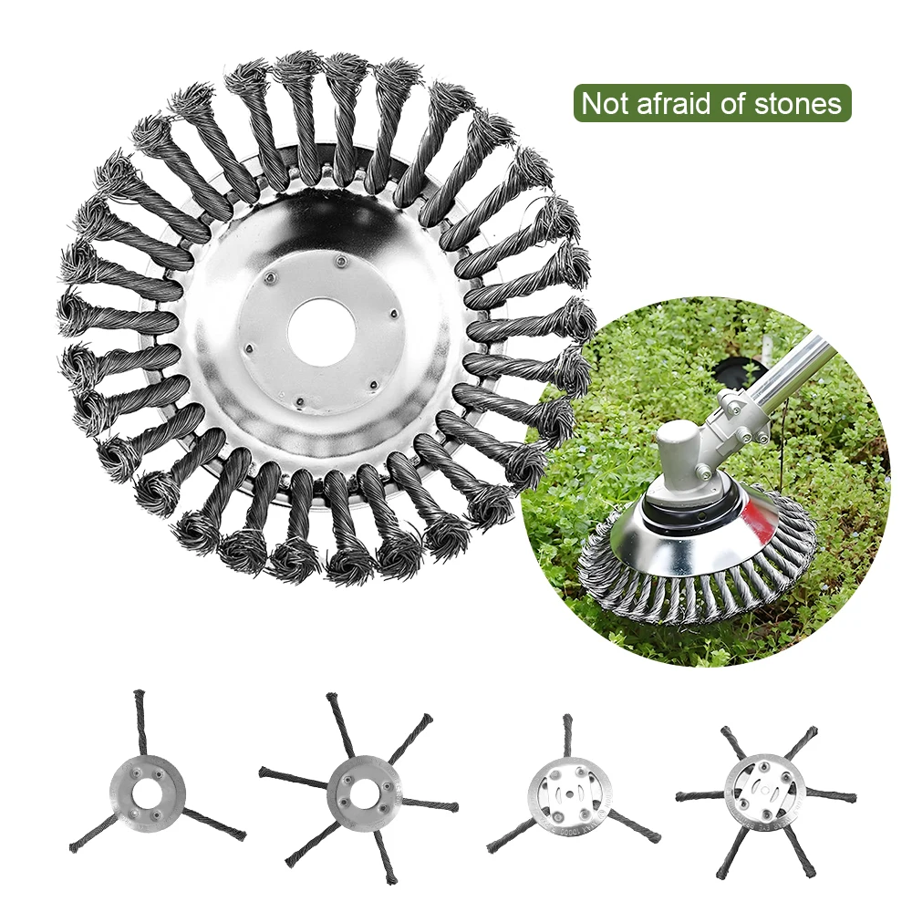 Rotary Weeding Wire Brush Wire Wheel Lawn Trimmer Heads Moss Rust Removal Mower Wire Trimmer 6" 7" 8" Replacement Heads