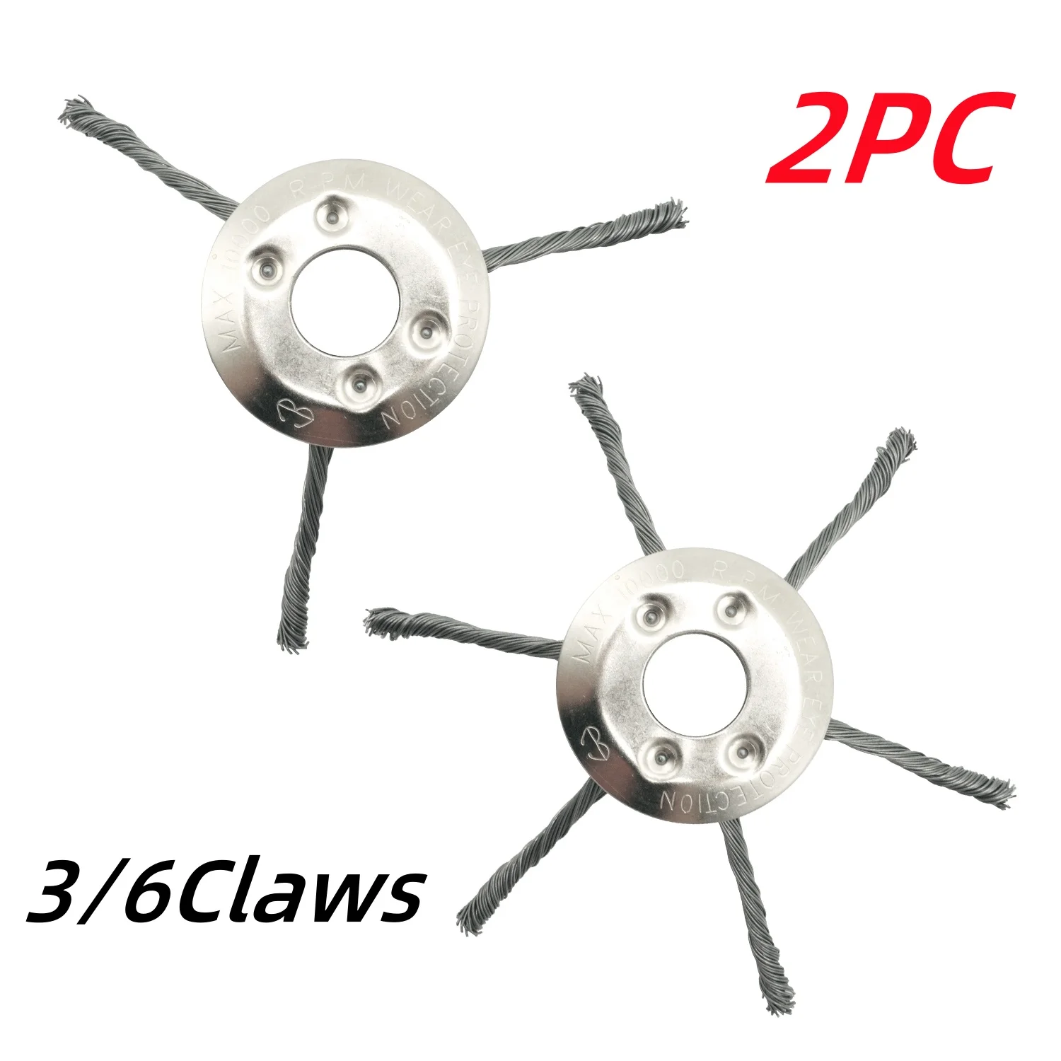 6inch Steel Wire Wheel Head Upgraded Grass Trimmer Head Universal Weed Brush Removal Moss Rust For Battery Mower 3/6 Claws
