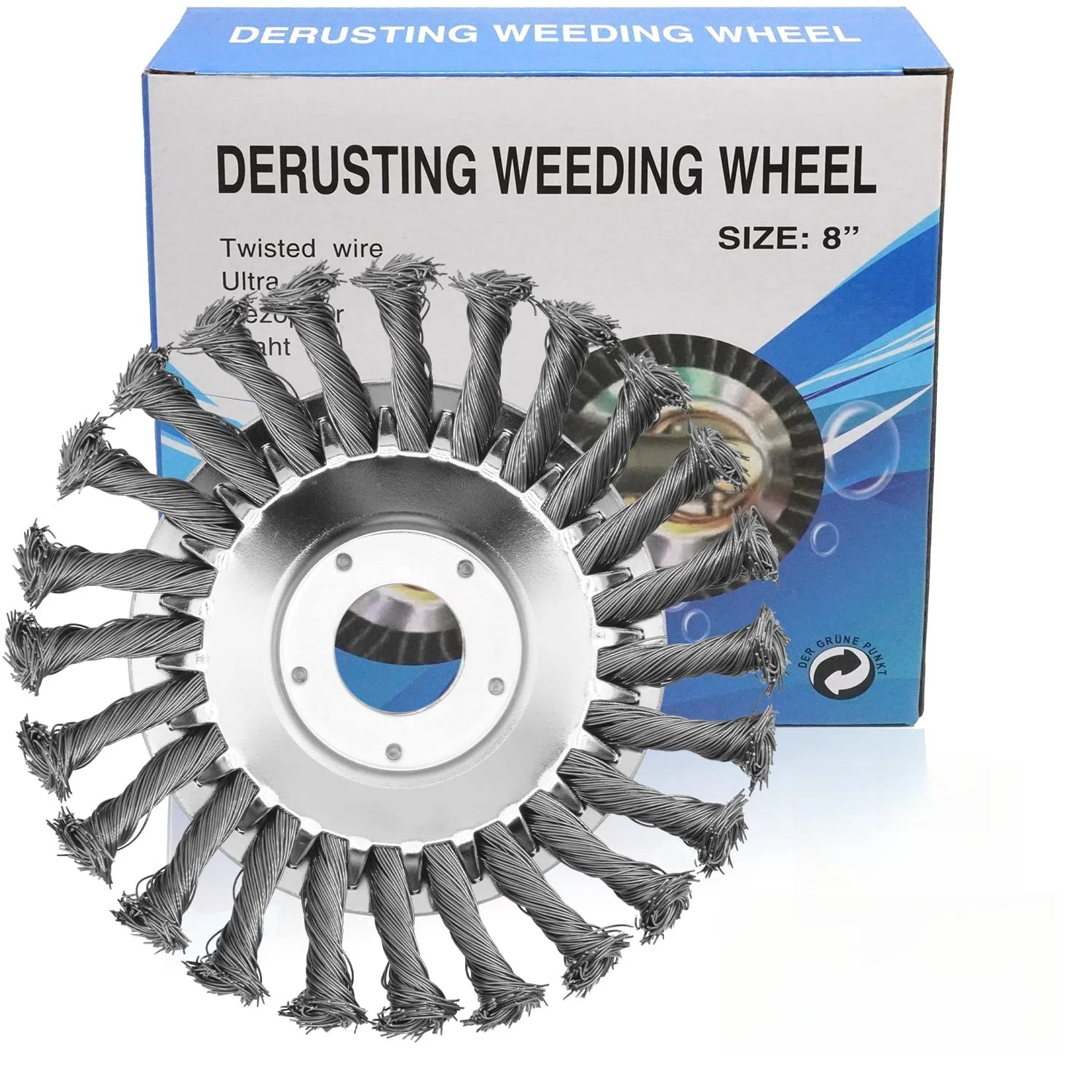 8 Inch Steel Wire Rotary Brush Cutter Trimmer Head Weeds Blade Cutter Compatible with String Trimmers, Moss Grass Rust Removal,