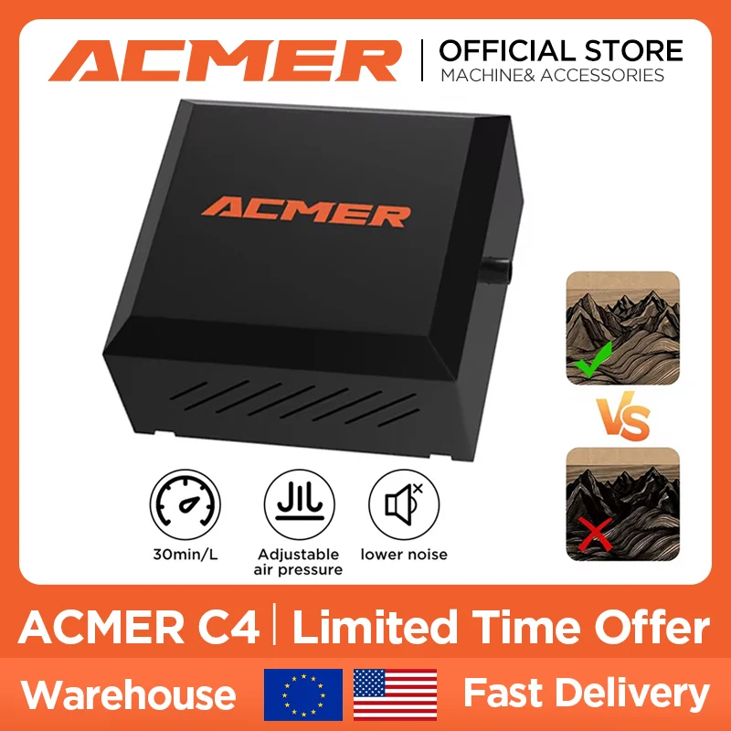 ACMER C4 Air Airflow Assist Kit 30L/min Universal Air Assist Pump Remove Smoke And Dust For Laser Engraver Cutter Machine