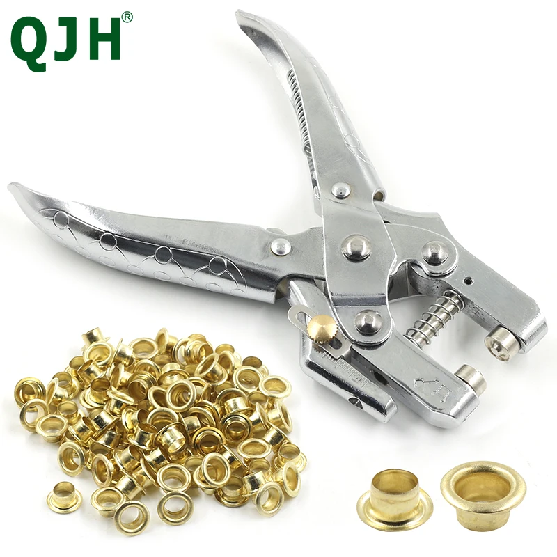 QJH 101Pcs Dual-Purpose Tool Grommet Eyelet Pliers Kit, Portable Grommet/Puncher Hand Press kit for Leather/Belt/Shoes/Cloths