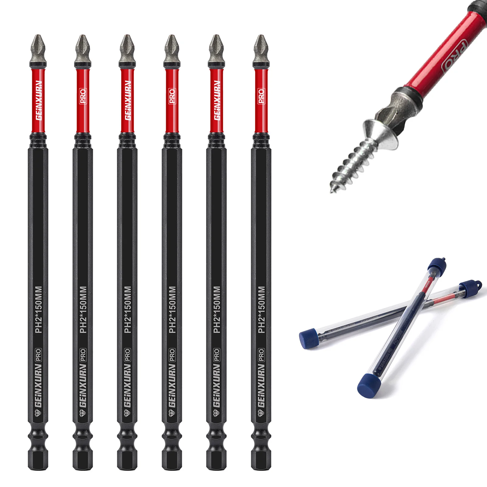 Geinxurn Diamond Coated Impact Screwdriver Bit Set, 6'' Insert Driver Bits, Magnetic S2 Steel PH2 Bits Set with Tubes Package