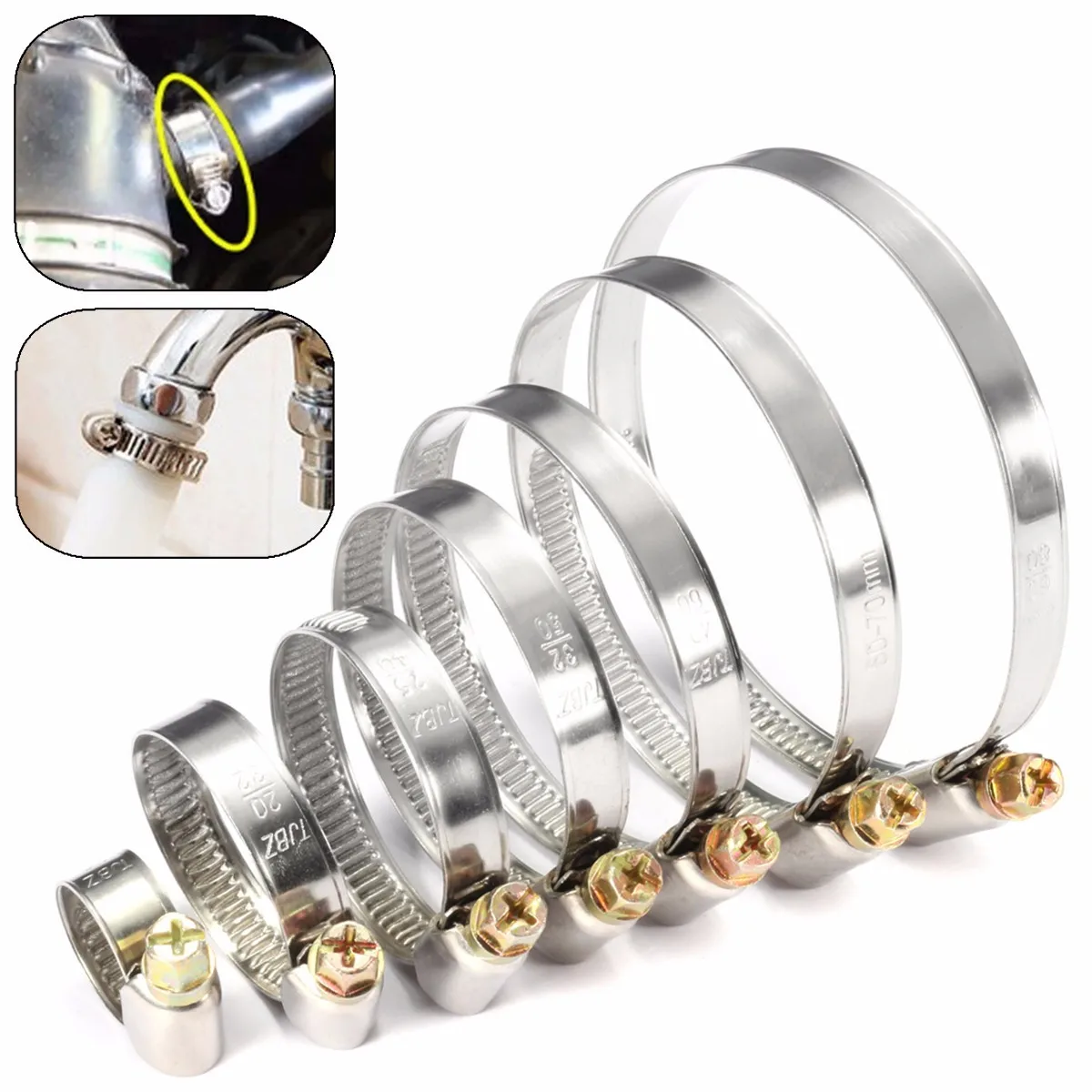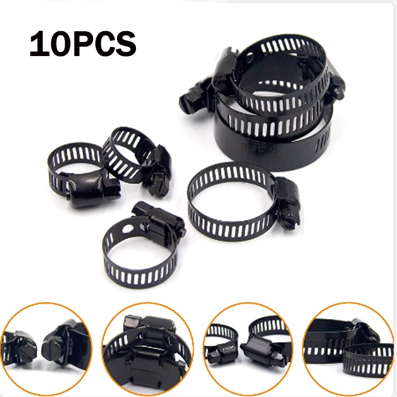 10 Pcs Stainless Steel 6mm To 12mm Hose Pipe Clamps Clips Fastener
