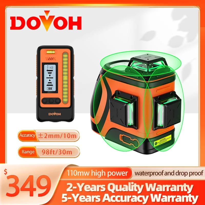 DOVOH Outdoor Laser Level with Receiver, 400ft High Power 360 Self Leveling with Detector for Sunlight Construction, H3-360G-Kit