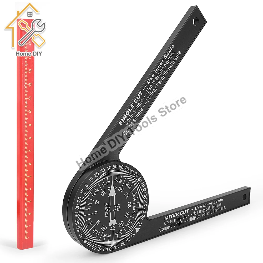 Woodworking Scale Mitre Saw Protractor 360° Angle Level with Pencil Carpenter Angle Finder Measuring Ruler Meter Gauge Tools