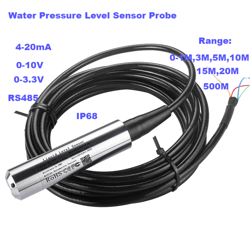 0-500M Range Hydrostatic Liquid Level Transmitter 4-20mA 0-10V 0-3.3V Output Water Pressure Level Sensor Probe 0-5M 10M 15M 20M