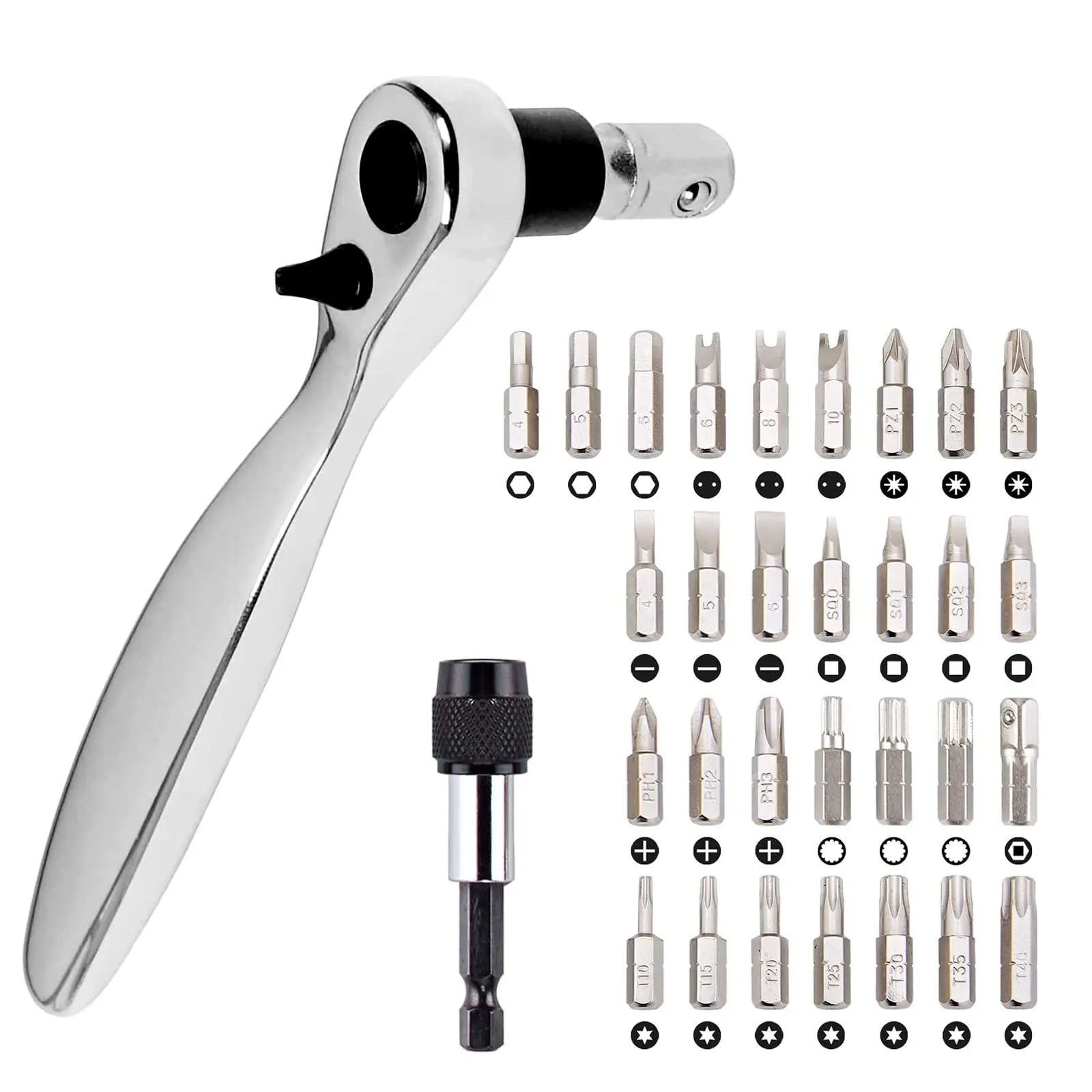 32 in 1 Reversible Rapid Ratchet Wrench Screwdriver Bits Set 1/4 Inch Mini Crv Multi tool Hex Wrench Torque 72 Tooth