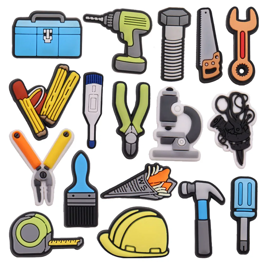 1-17PCS PVC Shoe Charms Fit Wristbands Tool Brush Pliers Scissors Screwdriver Wrench Hammer Hole Slipper Shoe Decoration Buckle