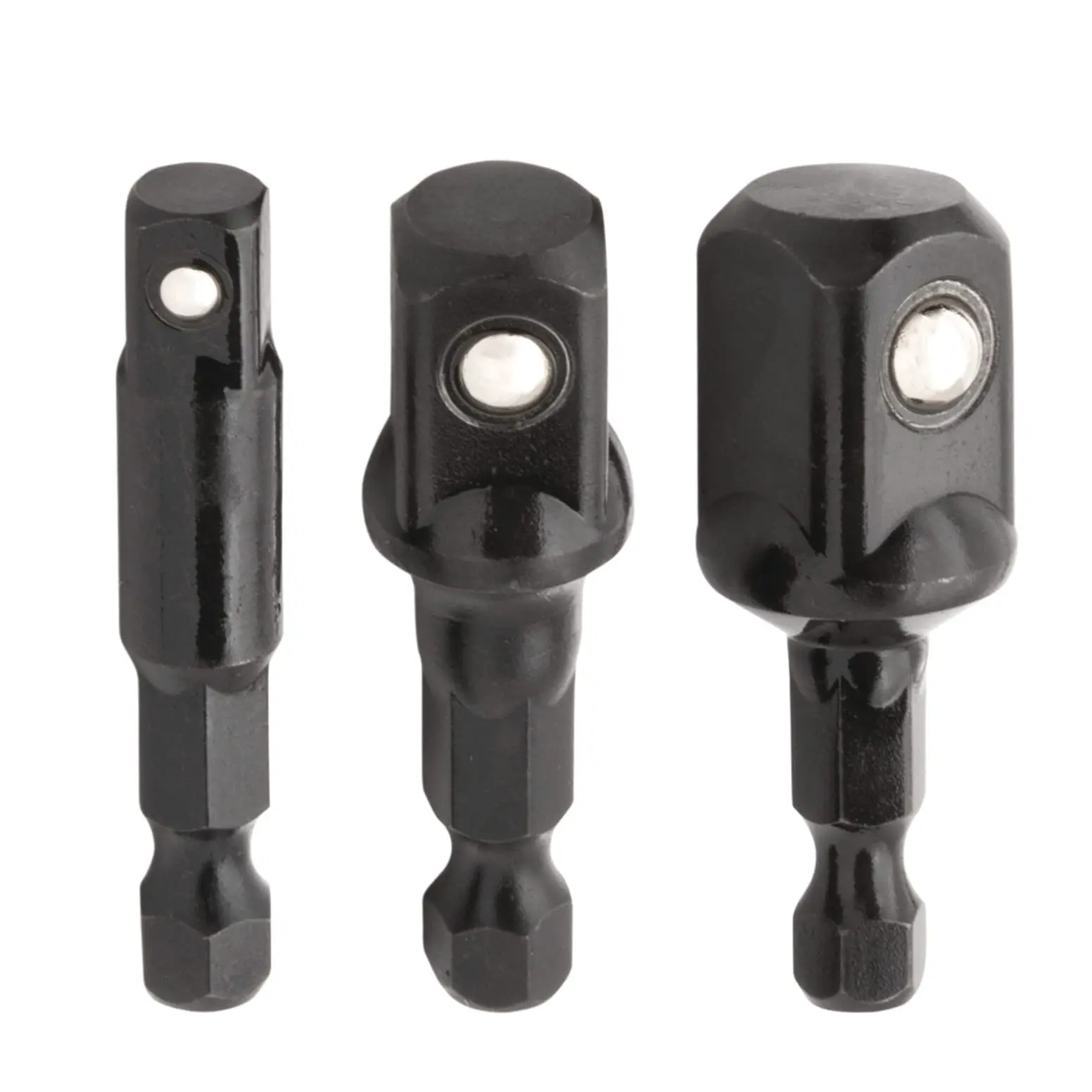 3Pcs Impact Socket Adapter 1/4 3/8 1/2 Inch Nut Driver Sockets Hex Shank Extension For Screwdriver Handle Tool