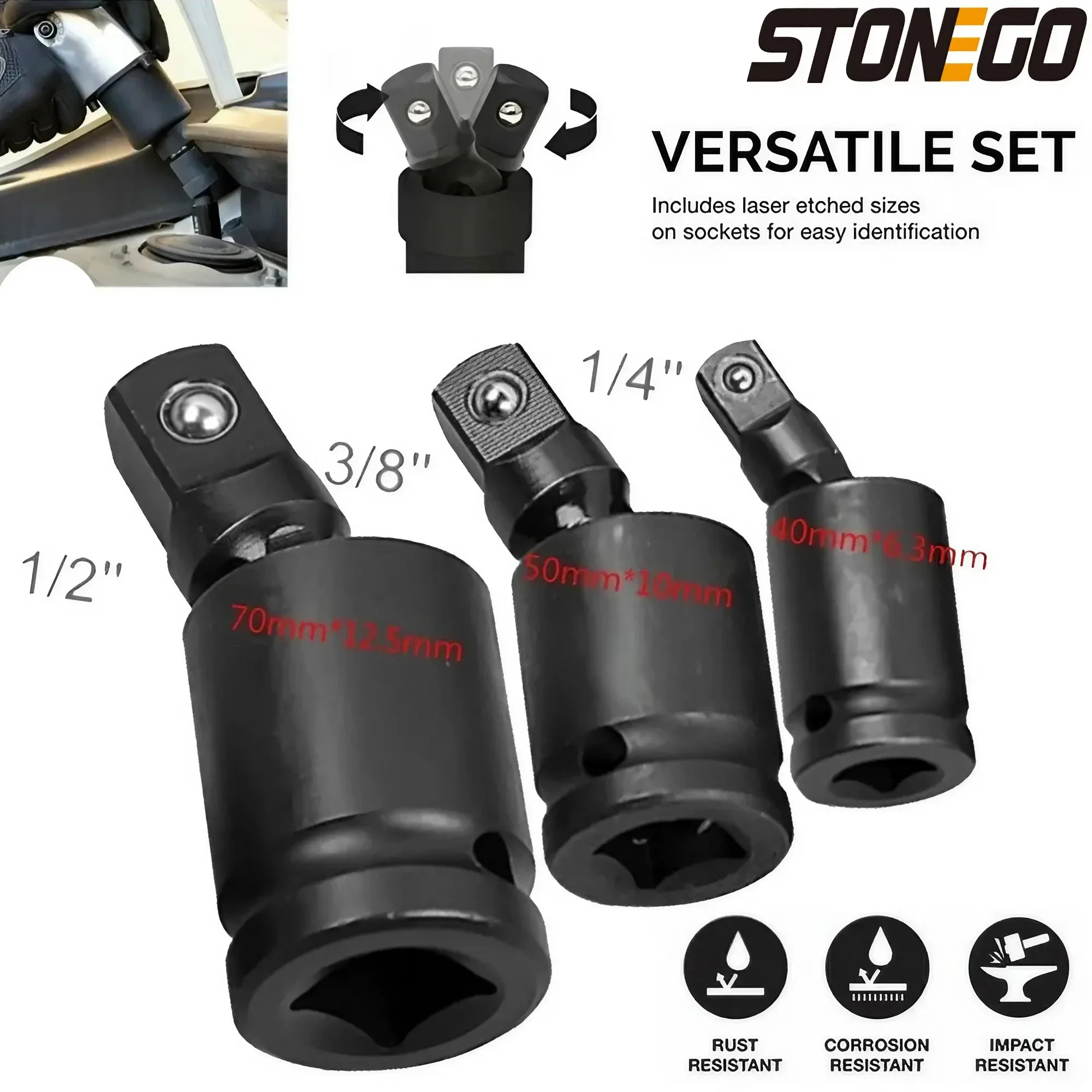 STONEGO Impact Universal Joint Set 1/4inch 3/8inch 1/2inch Drive Chrome Moly U Joint Sockets Access Hard To Reach Fasteners