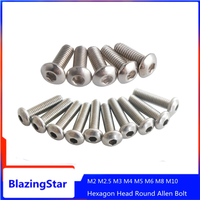 5/10/20/50PCS Hexagon Hex Socket Button Head Round Allen Bolt Screw 304 A2 Stainless Steel M2 M2.5 M3 M4 M5 M6 M8 M10 ISO7380