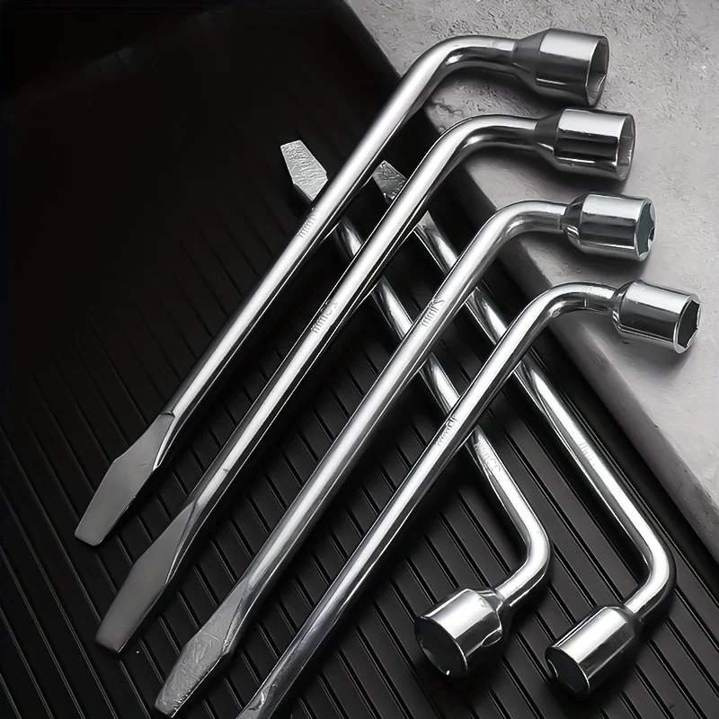 1pc Car Spare Tire Lug Wrench for Jack - L Type Hexagon 17/19/21mm Slotted End Socket Repair Tool