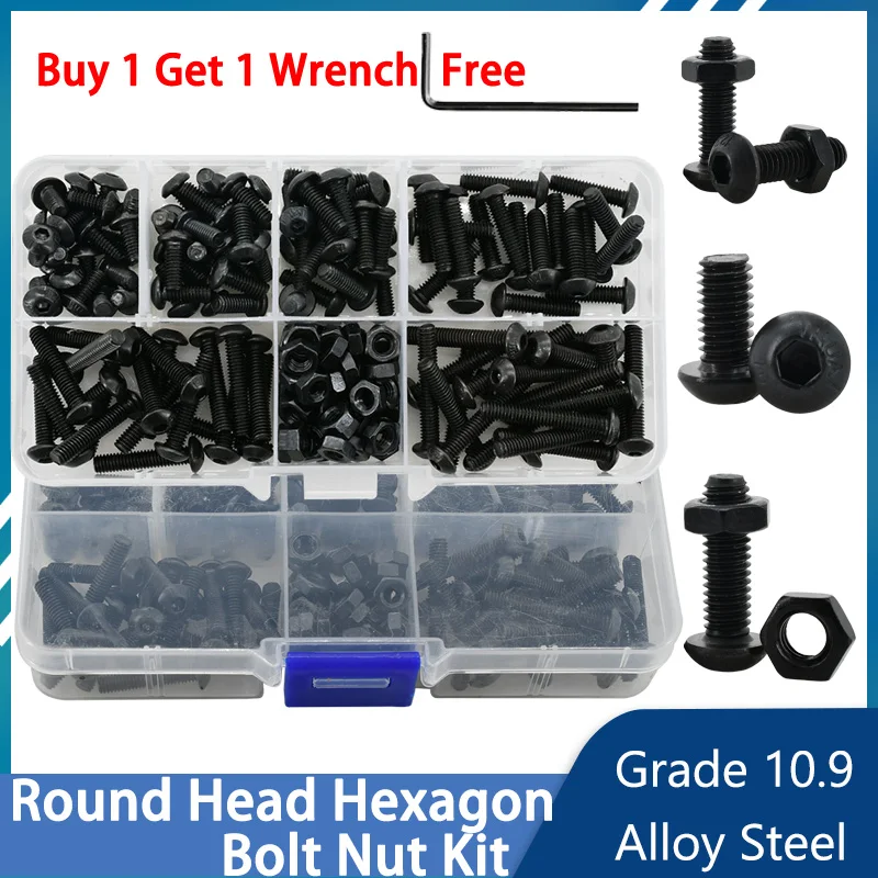 Grade 10.9 Black Carbon Steel Hex Allen Bolt Nut Kit Motor Fairing Bolts ISO7380 Hexagon Socket Round Head Screws M2 M3 M4 M5 M6