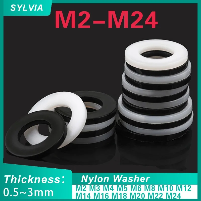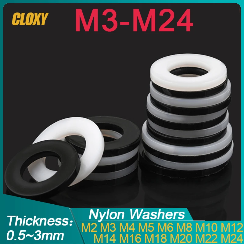M2 M2.5 M3 M4 M5 M6 M8 M10 M12 M14 M16 M18 M20 M22 M24 White Black Plastic Nylon Flat Washer Plane Spacer Insulation Gasket Ring