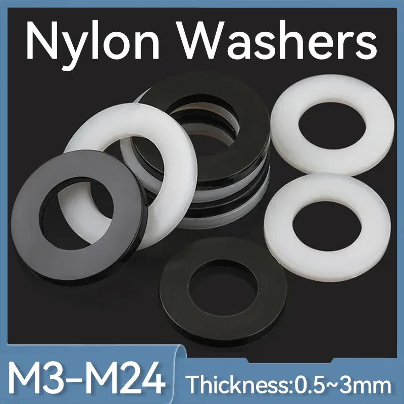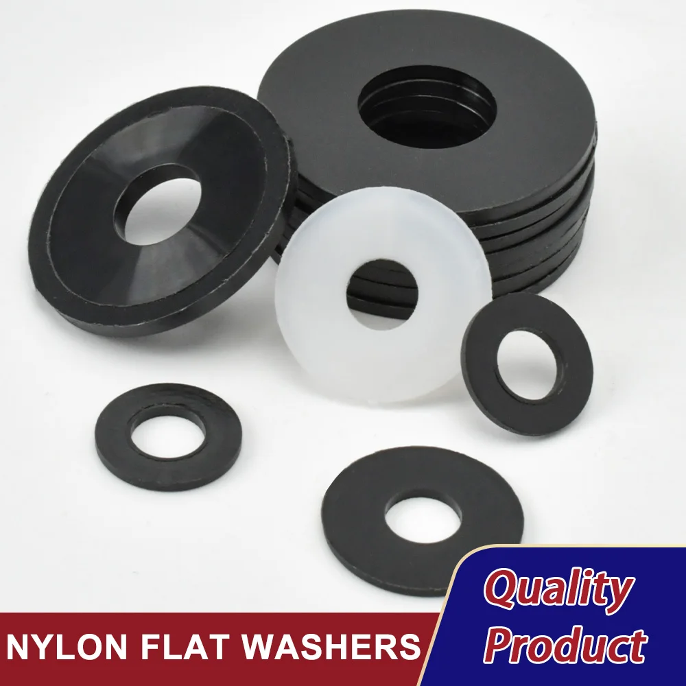 White/ Black Plastic Nylon Flat Washer Plane Spacer M2 M2.5 M3 M4 M5 M6 M8 M10 M12~ M24 Insulation Gasket Ring For Screw 0.5~3mm
