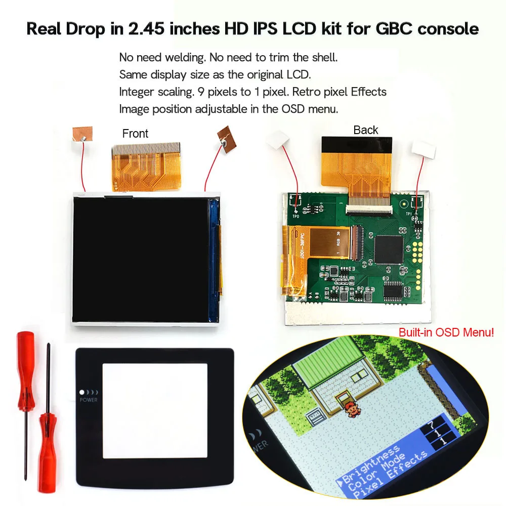 Newest Real Drop In 2.45" GBC IPS Backlight Screen PCB Mod Kits Replacement Easy Installation OSD Pixel Effect For Gameboy Color  Read more