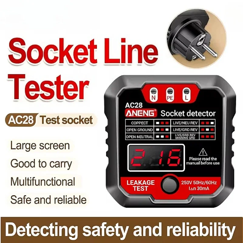 ANENG AC27/AC28 Digital Socket Power Tester 50Hz/60Hz Socket Polarity Detector Voltage Tester Circuit Breaker Finder EU/US Plug