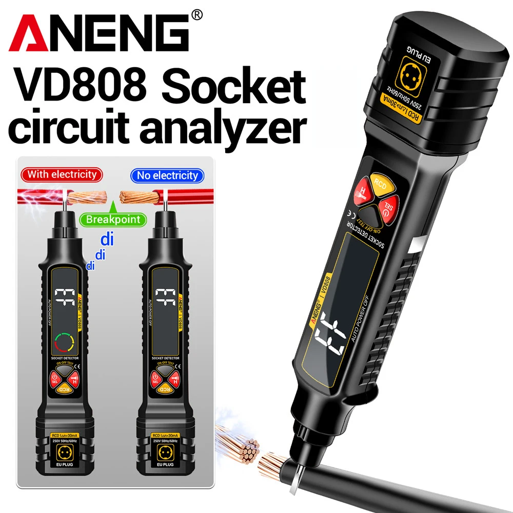 ANENG VD808 Circuit Breaker Finders Socket Circuit Analyzer AC Voltage Tester US/EU Plug Leakage Polarity Leakage Tester Tools